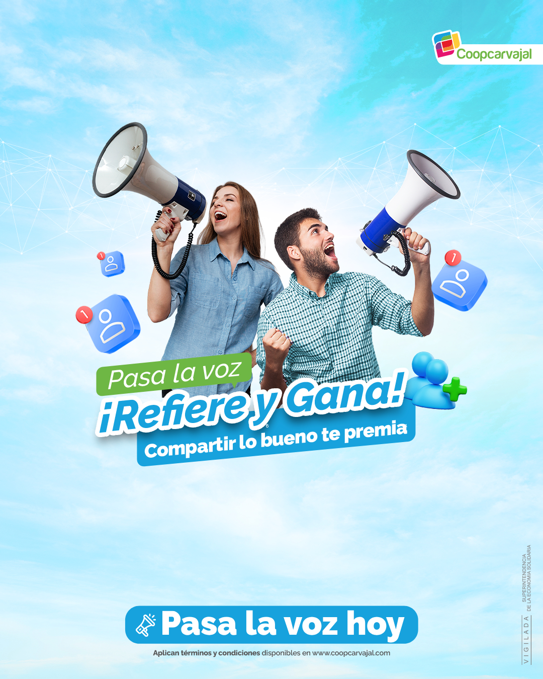 • Invita a tus compañeros de trabajo a ser parte de Coopcarvajal y comparte con tu referido tu número de identificación.